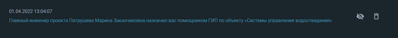 Помощнику ГИПа приходит уведомление о назначении его на роль помощника ГИП.