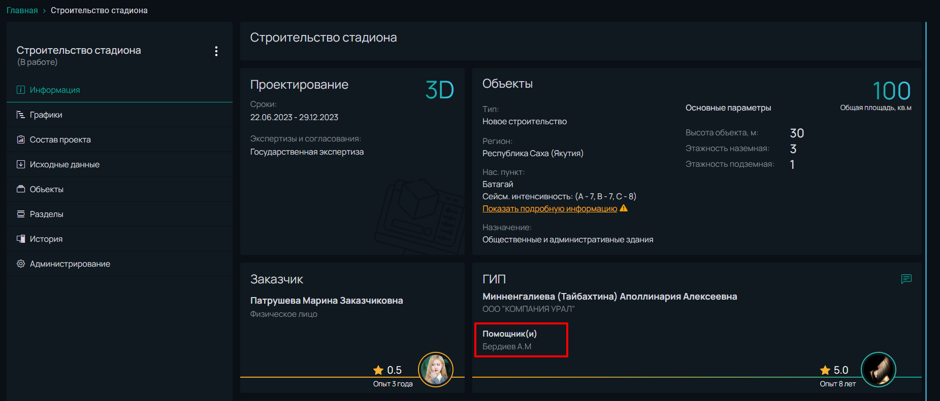 Карточка выбранного помощника отобразится во вкладке администрирование, а также во вкладке Информация