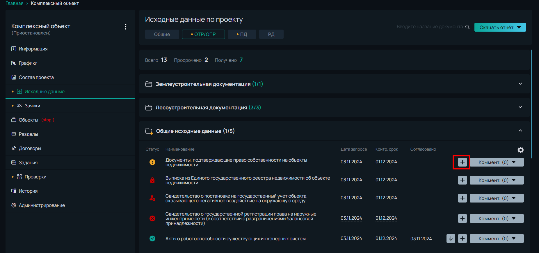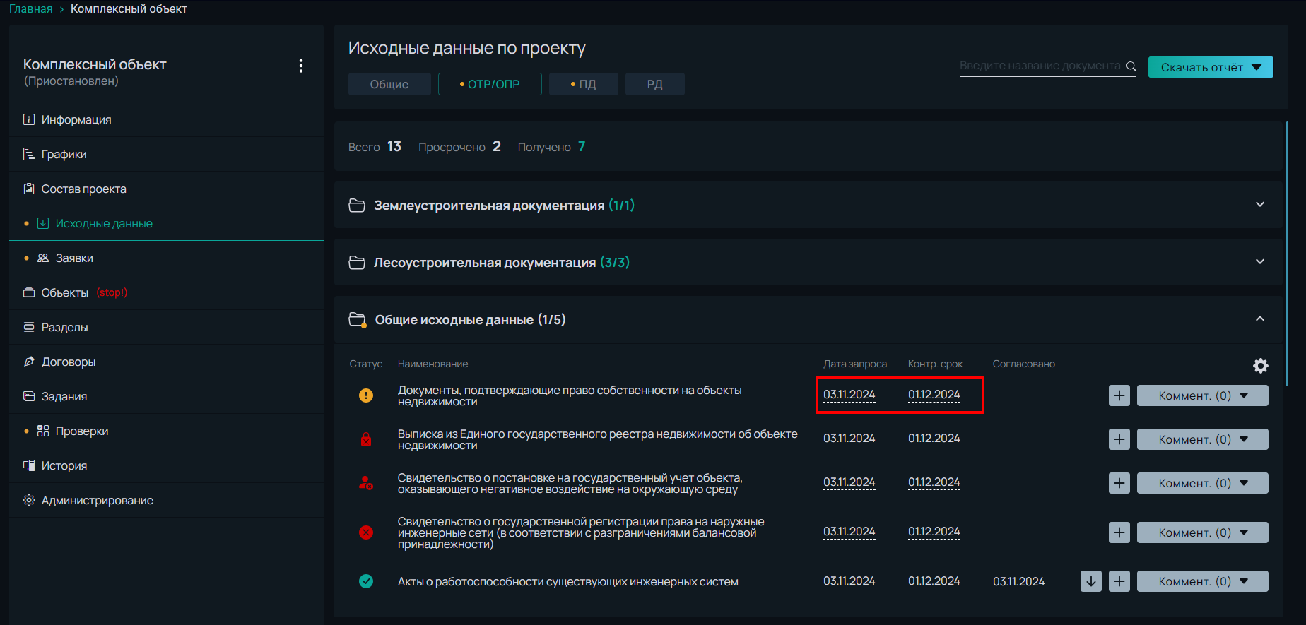 При необходимости дату запроса и контрольный срок можно изменить. Право на изменение контрольного срока есть у Заказчика, ГИПа, помощника ГИПа.
